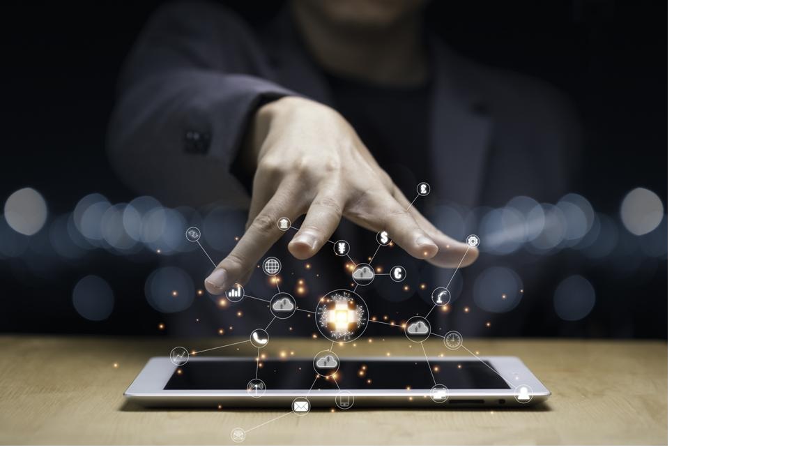 Businessman hand create artificial intelligence for technology transformation and internet of thing on tablet. Cloud technology will management big data include business strategy , customer service.